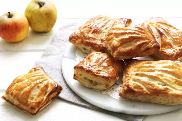 - Pour finir Fendre légèrement le dessus des chaussons de la forme que vous souhaitez. Battre un œuf et l’étaler à l’aide d’un pinceau sur les chaussons pour la dorure. Enfourner ensuite 30 min à 180°C.