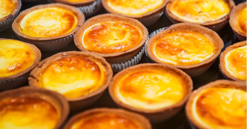 - 4. Dans un saladier, mélangez les 3 œufs, le lait concentré et la vanille. Battez jusqu’à ce que le mélange soit homogène. Ajoutez ensuite le sirop de sucre et mélangez bien. Lorsque le mélange est lisse, versez-le sur la pâte dans les moules à tarte.5. Placez les tartelettes dans le four préchauffé et faire cuire pendant environ 20 minutes jusqu’à ce que la pâte présentent une jolie couleur dorée. Attendez 20 minutes que les tartelettes refroidissent puis démoulez et dégustez !